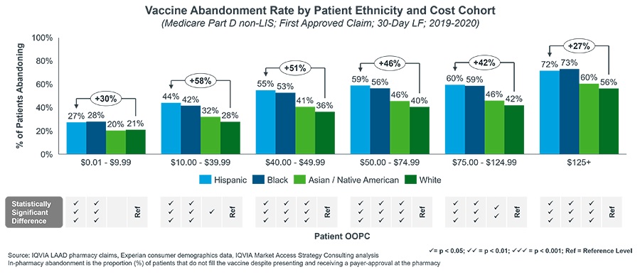 疫苗接种也存在非成本障碍,如健康素质、流动性的挑战,和疫苗踌躇。lol买外围用什么软件如果成人患者中克服这些障碍,现在药店的疫苗覆盖下医疗保险D部分,经付款人,这些患者通常收取每剂OOPC,进一步阻止一些——尤其是来自少数和弱势群体——获得疫苗接种。消除OOPC为免疫实践咨询委员会(ACIP)推荐的疫苗可能是最有效的短期解决方案提高疫苗的使用率在老年人。本博客中讨论分析结果显示,如果OOPC医疗保险部分D-covered ACIP-recommended疫苗消除non-low收入补贴(non-LIS)新生,疫苗之间的填充率患者出席药房payer-approved疫苗声称可能会增加近60%(57%对89%)相比,目前的成本分担安排和利率在药店payer-approved疫苗遗弃。此外,对黑人和西班牙裔参与者,消除OOPC可能增加在药店payer-approved疫苗填充率达91%(43%到82%)和89%(45%对85%),分别创建一个额外的机会提高疫苗保护和地址的社区健康差异。lol买外围用什么软件