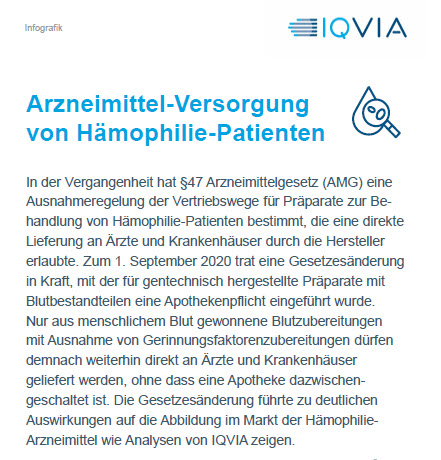 在der Vergangenheit帽子§47 Arzneimittelgesetz (AMG)一张Ausnahmeregelung der Vertriebswege毛皮Praparate苏珥Behandlung冯Hamophilie-Patienten bestimmt,死一张direkte Lieferung一个Arzte和Krankenhauser军队死Hersteller erlaubte。Zum 1。2020年9月达叻一张Gesetzesanderung卡夫,麻省理工学院der毛皮gentechnisch hergestellte Praparate麻省理工学院Blutbestandteilen一张Apothekenpflicht eingefuhrt,。努尔来自menschlichem血液gewonnene Blutzubereitungen麻省理工学院Ausnahme冯Gerinnungsfaktorenzubereitungen可以demnach weiterhin direkt一个Arzte和Krankenhauser geliefert了,ohne dass一张药房dazwischen geschaltet坚持。死Gesetzesanderung fuhrte祖茂堂deutlichen Auswirkungen auf死Abbildung im Markt der Hamophilie-Arzneimittel是不是Analysen冯IQVIA请。