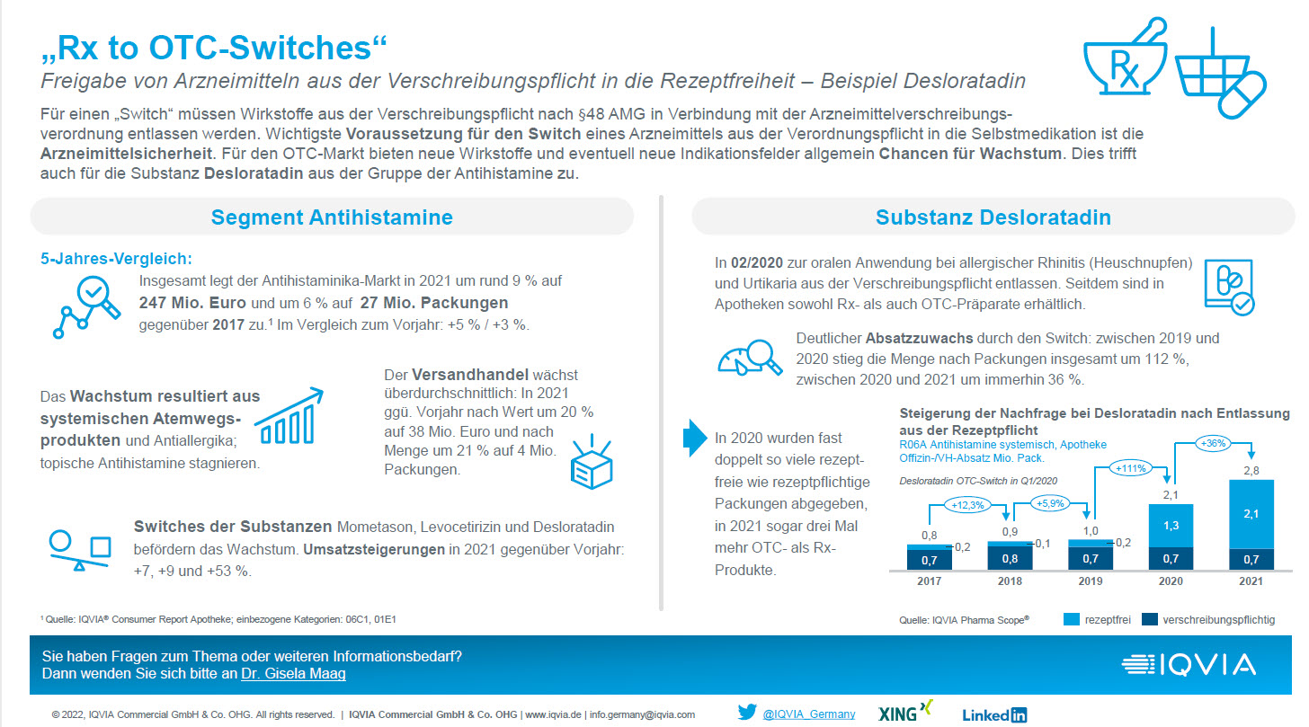 毛皮杯„开关”得Wirkstoffe来自derVerschreibungspflicht去§48 AMG Verbindung麻省理工学院der Arzneimittelverschreibungsverordnung entlassen了。Wichtigste Voraussetzung毛穴开关进行Arzneimittels来自derVerschreibungspflicht在死Selbstmedikation是Arzneimittelsicherheit死去。毛穴OTC-Markt bieten neue Wirkstoffe和eventuell neue Indikationsfelder allgemein Chancen毛皮Wachstum。死trifft欧什毛死Substanz Desloratadin来自der Gruppe抗组胺剂祖茂堂。