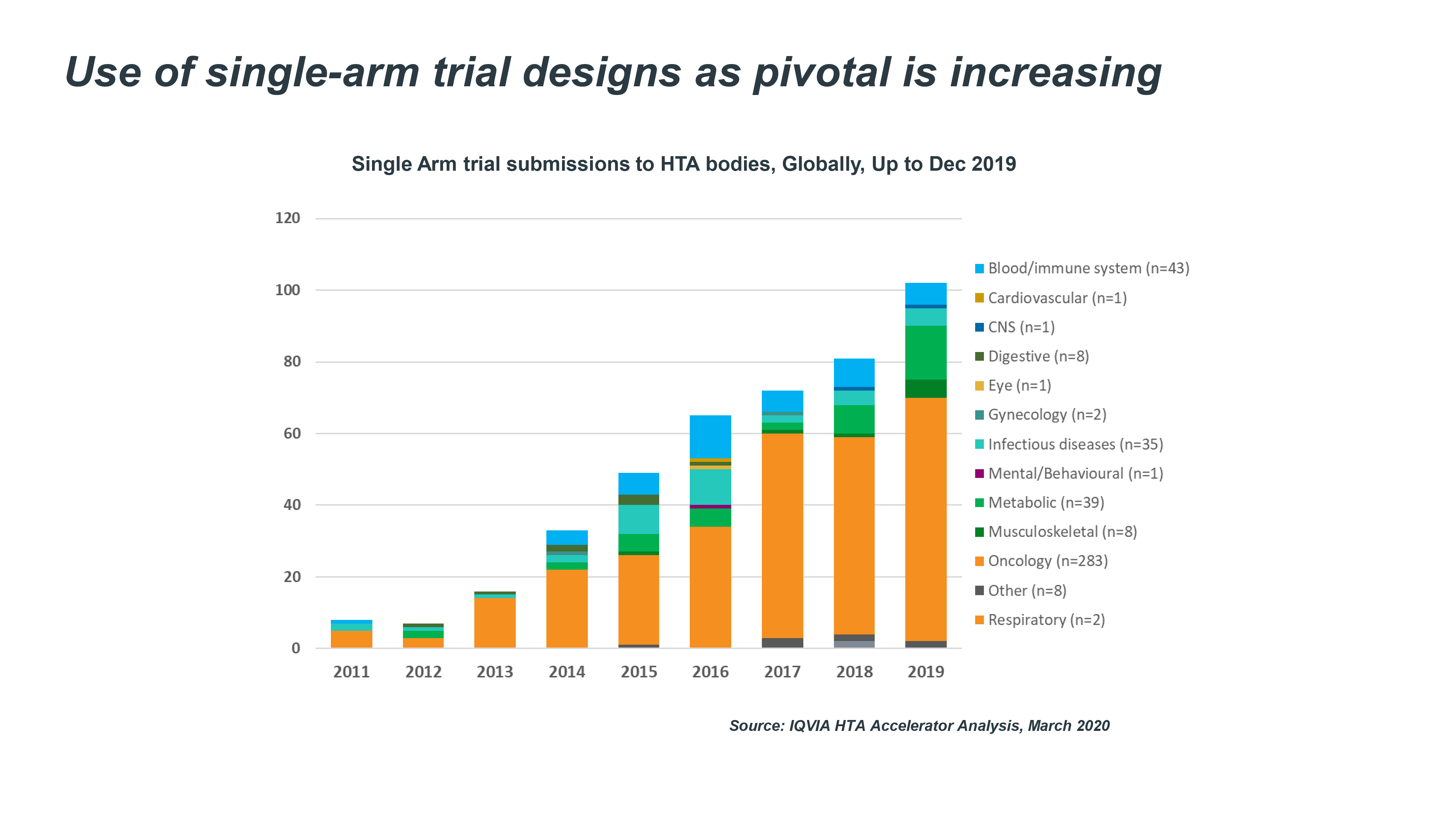 从RWD捕获的外部比较器有助于建立临床研究的比较环境。它们对于单臂试验特别有价值,在单臂试验中,由于稀有或小的患者人群和/或疾病的进行性性质,控制臂不具有道德或可行。外部比较器还可以与单臂治疗登记处一起使用,以提供批准后安全研究的背景。