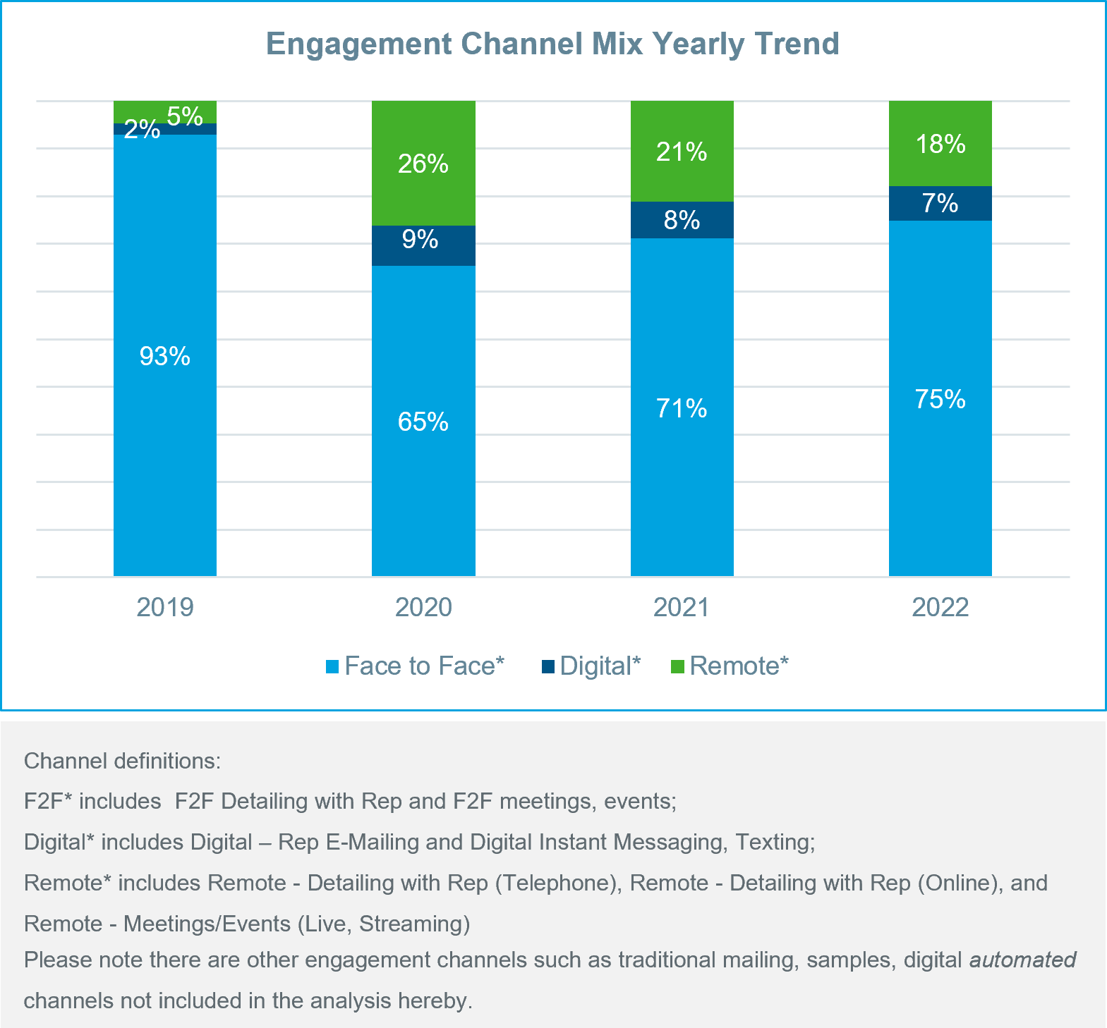 自广度变异以来全球商业约定量增加 远程信道接触量持续226%传统通道面对面互动仍然是HCP全球首选参与方法